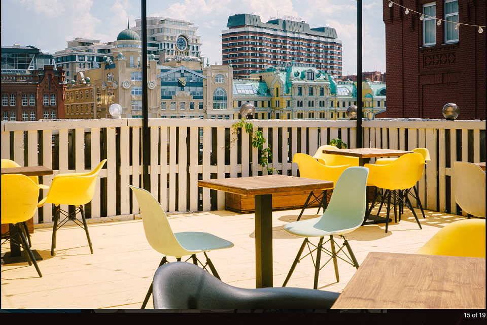 По выходным часто играет диджей. Есть возможность приятно провести время в компании друзей и полюбоваться городской архитектурой с высоты.