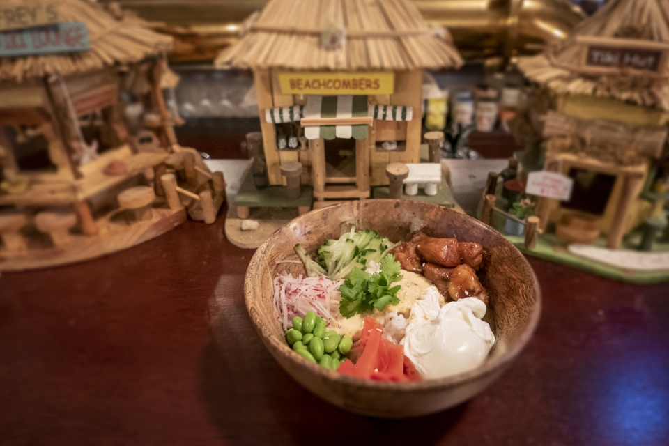 Кухня здесь под стать бару — с оглядкой на тропики, в основном — на Карибы. И с учетом того, в этом регионе перемешалось много разных культур и кухонь. Отсюда — и бургеры с сэндвичами, и спринг-роллы (самые интересные — с рваной свининой), и ирландское рагу (да, ирландцы там тоже живут), и дамплинги. Ультрамодные нынче поке и боулы тоже имеются. Есть один поке, который выделяется из общего ряда — с сомом (450). И его можно было бы признать образцовым, если бы в нем было побольше этого самого сома — рыба интересная, в ресторанах встречается не часто, а тут теряется посреди прочих ингредиентов.