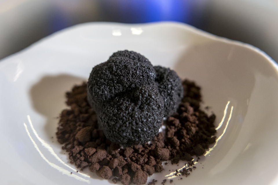 В конце, естественно, десерт «Трюфель». С виду — не отличишь от настоящего. В него, разумеется, тоже добавлен трюфель.
