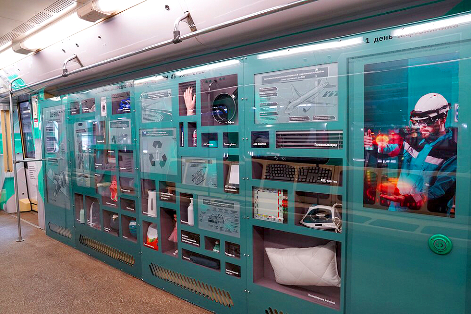 Научно-познавательный состав, посвященный нефтегазохимической отрасли в России, катается по Арбатско-Покровской линии. В вагонах развернулась настоящая экспозиция. На стенах внутри защитных витрин можно увидеть предметы, ставшие символами эпохи. Среди них, например, ретротелефоны 1920-х годов, пылесос «Сатурн» 1970-х, электронная игра «Тетрис» из 1990-х и игрушка спиннер из 2017-го. Все эти вещи сделаны из материалов одного типа — полимеров. А еще пассажиры узнают, благодаря чему бумажный стаканчик удерживает жидкость, когда и где в Москве появилась первая рекламная неоновая вывеска, какую «умную» одежду в будущем станут носить горожане.