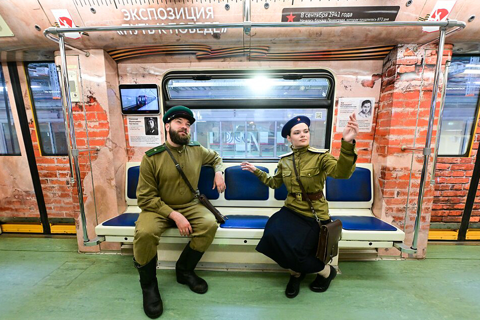 По Арбатско-Покровской линии поехал тематический поезд, посвященный открывшейся к 9 мая в музее Победы мультимедийной экспозиции «Путь к Победе». В вагонах можно узнать о подвигах воинов в годы Великой Отечественной войны. Например, об одном из руководителей обороны Брестской крепости Петре Гаврилове, командире первой батареи «катюш» Иване Флерове, летчиках Иване Кожедубе и Александре Покрышкине. На стенах в салоне поезда разместили оцифрованные изображения реликвий из фондов Музея Победы. Среди них — летная книжка воевавшего без ступней летчика Захара Сорокина, медали актера-фронтовика Иннокентия Смоктуновского и другие экспонаты.