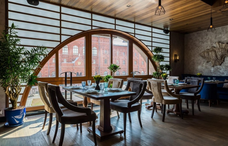 Этот легендарный рыбный ресторан многие компании столицы выбирают для проведения корпоративов — из-за идеального расположения и безупречного сервиса. К услугам гостей основной зал, рассчитанный на 150 человек банкетом и 250 фуршетом, четыре вип-комнаты, оригинальный интерьер, хорошо продуманная винная карта и необычные блюда из рыбы и морепродуктов.
