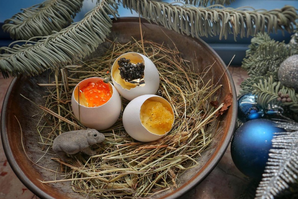 Хорошая штука (несмотря на золотце) – крем англез (700) с тремя видами икры (причем крем там из желтков со стружкой копченого лосося, сливочного масла и лактоферментированного сена). Самая основательная, но и самая спорная позиция (она еще до Антона была) – свиная котлета (700, суховатая и пресноватая) с матбухой, пашотом и сырным соусом.