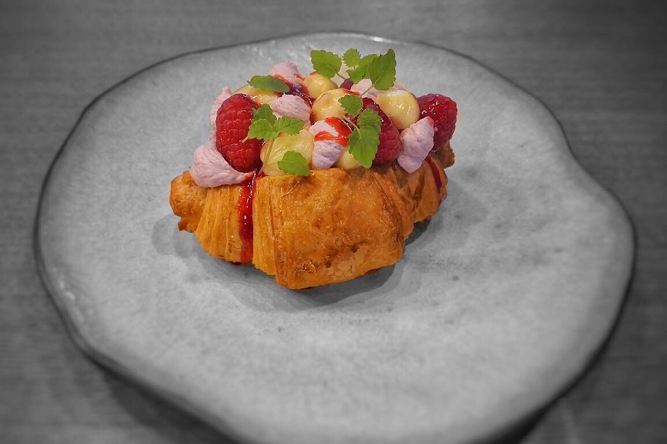 Бенедикт (400) интересен кисловатыми подвяленными томатами и грудинкой, маринованной в хересе с медом. Творожная запеканка с цукатами (400) особых чувств не вызвала, круассаны двух видов (400) тоже скорее для красоты, а главной радостью неожиданно оказалась пшенная каша на миндальном молоке с тыквой и соленой карамелью (400). И это при том, что к кашам я абсолютно равнодушен. Запивать это все можно какао на ряженке. Органично.