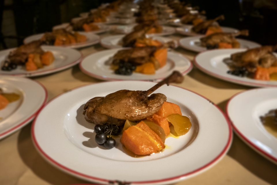 Казалось бы, все просто: берешь яснополянские продукты, читаешь книжку рецептов Софьи Андреевны Толстой, — вот и весь обед. Но не тут-то было. Рецепты Софья Андреевна, похоже, писала для себя, чтобы не забыть, явно не думая, что когда-то они будут изданы. Вот как у нее, например, описывается матлот: «Взять какую угодно рыбу или даже разнородных рыб, нарезать и положить в кастрюлю…» и дальше в том же духе. А могла бы уточнить, что рыба нужна белая, пресноводная. На яснополянском обеде в «Матрешке» был подан матлот из сома. Ему предшествовали овощной мильфей с пореем, копченым чесноком и грецким орехом, душеные в сметане грибы и, пожалуй, главная радость вечера — совершенно восхитительная утка с репой, томленой в одуванчиковом меде, тыквой и медом.