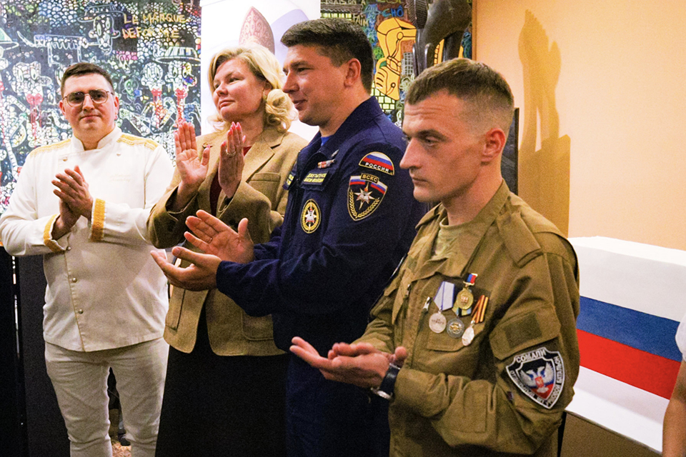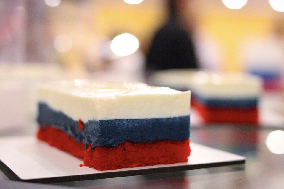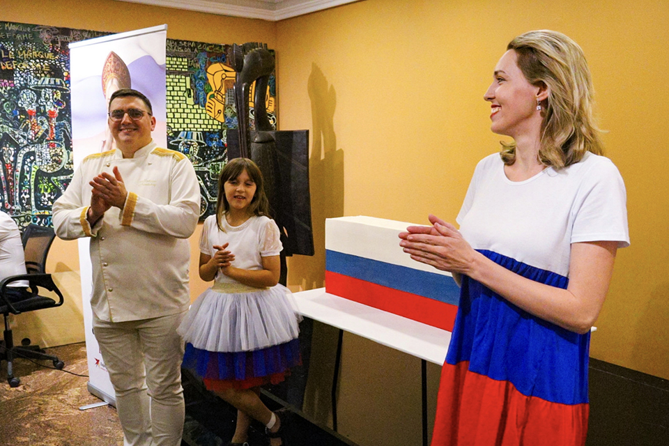 Под руководством звездных кондитеров Максима и Марины Синицких мастера создали десерты в цветах российского флага, представляющий собой символ единства и заботы о героях.