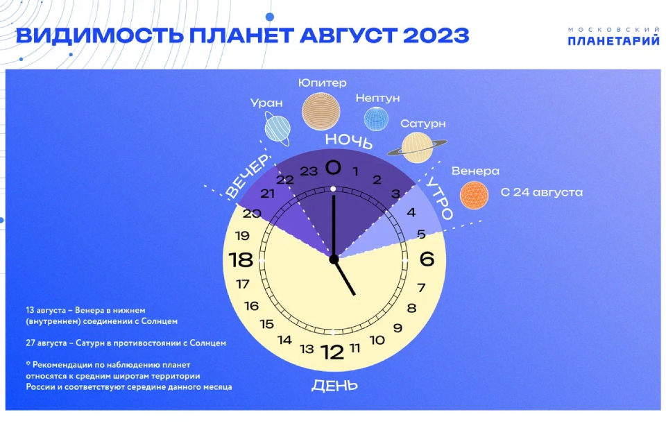 27 августа — лучшее время для наблюдения Сатурна. Он будет находиться в противостоянии — противоположной стороне от Солнца относительно Земли. В это время планета располагается на минимальном расстоянии от Земли, а ее диск полностью освещен Солнцем.
