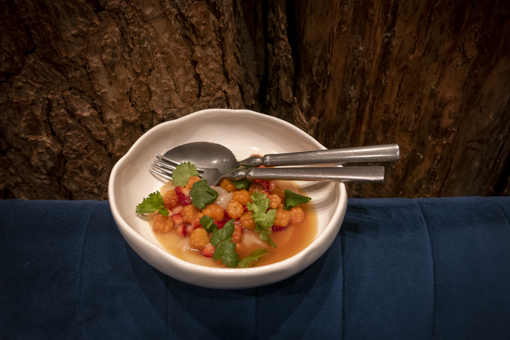 В обычное время «СибирьСибирь» — это, конечно, строганина, пельмени, щи и котлеты из лося. Но и к постным меню шеф Евгений Кузнецов всегда подходит ответственно. И с выдумкой, которая часто выходит за рамки того, что принято считать сибирской кухней. И даже русской. Но всякий раз к инородному (в географическом смысле) элементу добавляется что-то родное. Если спагетти из цукини, то с вешенками (740), если гребешок, то с морошкой (880).