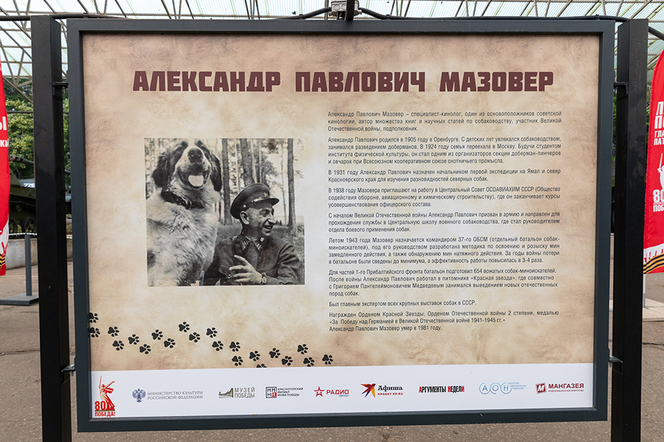 Отдельный раздел посвящен основоположникам служебного собаководства и советским кинологам: Григорию Медведеву, Александру Мазоверу, Дине Волкац.