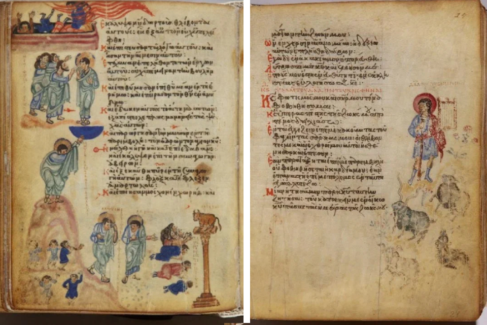 Миниатюры в псалтыри — это не просто украшение. Они рассказывают истории, спорят, интерпретируют и комментируют текст, позволяя исследователям в буквальном смысле видеть духовную жизнь IX века. Внимания заслуживает и фронтиспис — иллюстрация рядом с титульным листом, выполненная в той же манере, что и маргинальные миниатюры.