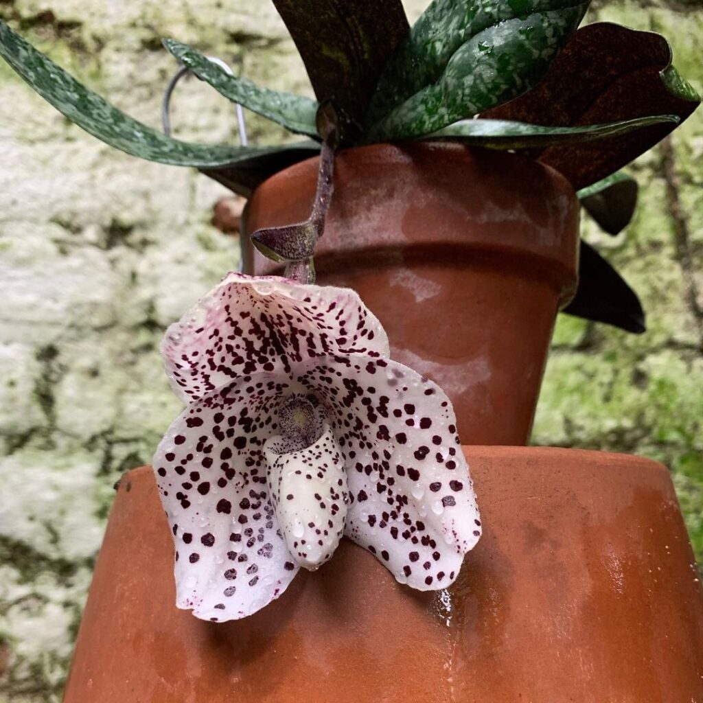 В природе эта орхидея произрастает в только в некоторых уголках земного шара — на Мьянме, в Таиланде, Малайзии и Южном Китае. Листья растения имеют эллиптическую форму с немного закруглёнными концами, а верхняя сторона окрашена в тёмно-зелёный цвет с серебристо-серым мраморным рисунком. Тем временем, внутренняя часть покрыта яркими пурпурными пятнами.