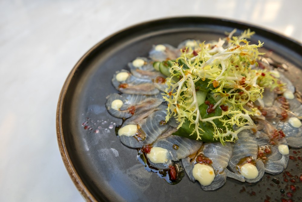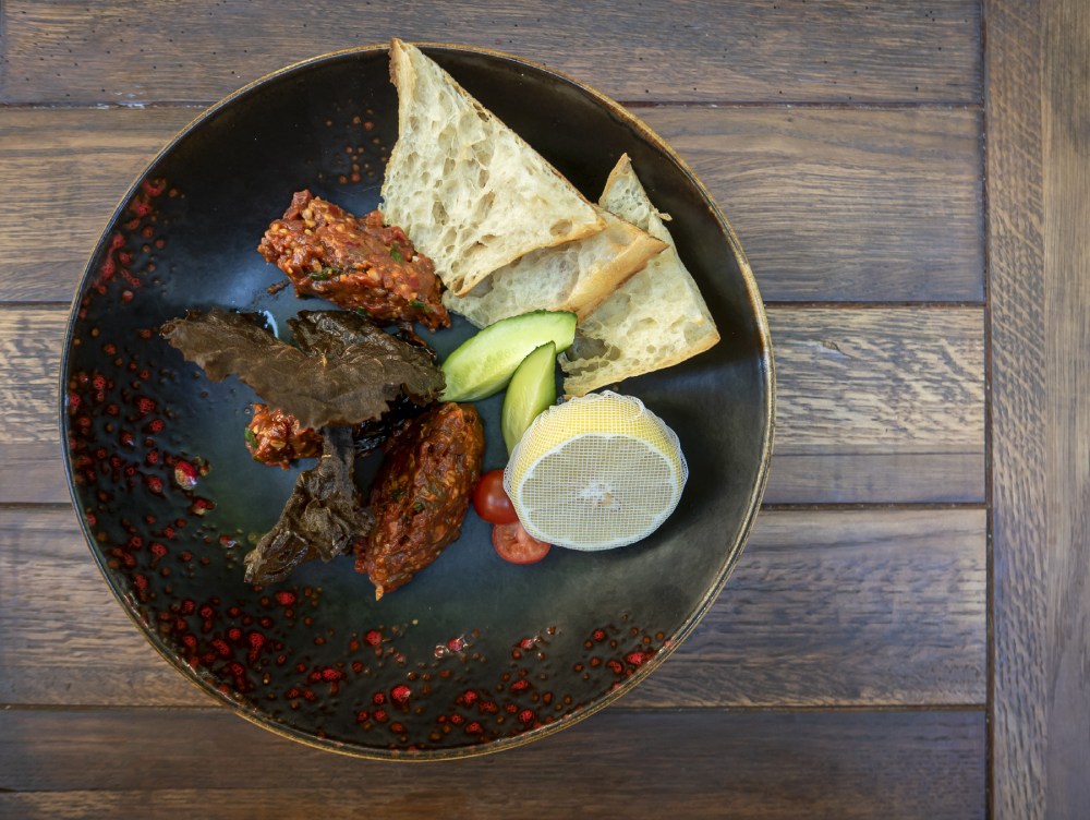 Ну и между делом новый шеф допускает приятные вольности, без которых запросто можно обойтись, но с ними как-то веселее. Это, например, чипсы из виноградных листьев в чи кюфте или рулетики из сушеного лаваша, подаваемые с мацуном — они очень напоминают детские вафельные трубочки и так же приятно хрустят.