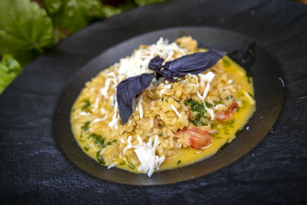 Второе направление работы — осовременивание армянской классики, сближение ее с европейской кухней. Вот так и выясняется, что из армянской стерляди можно готовить карпаччо (760), а из дробленой крупы дзавар (обычно из нее делают арису — кашу с курицей) — очень своеобразное, но ризотто (1050) со стерлядью и креветками. И армянский сыр в нем очень кстати.