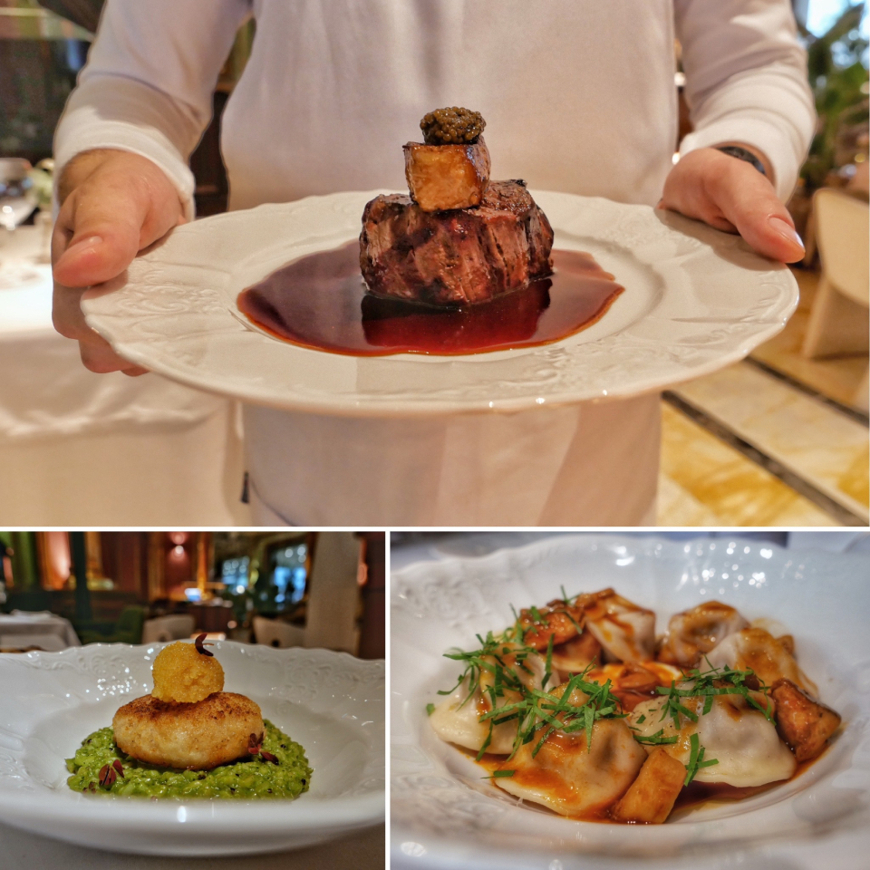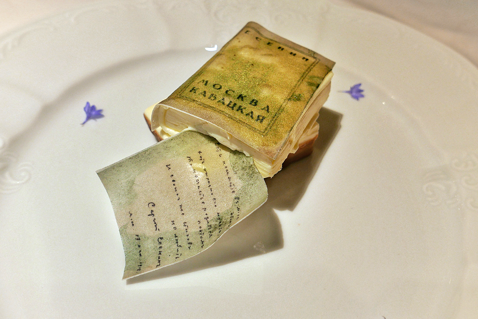 А теперь про еду. Выглядит она роскошно, под стать интерьерам, то и дело встречается икра (даже на говяжьем тартаре), но до сусального золотца, к счастью, дело не доходит. Есть французская классика (прекрасный пате-ан-крут и не менее прекрасный террин из фуа гра с желе из морошки), есть кое-что по разделу «переосмысления» (нисуаз с печенью трески или оливье с крабом и очень подходящей к нему щучьей икрой).