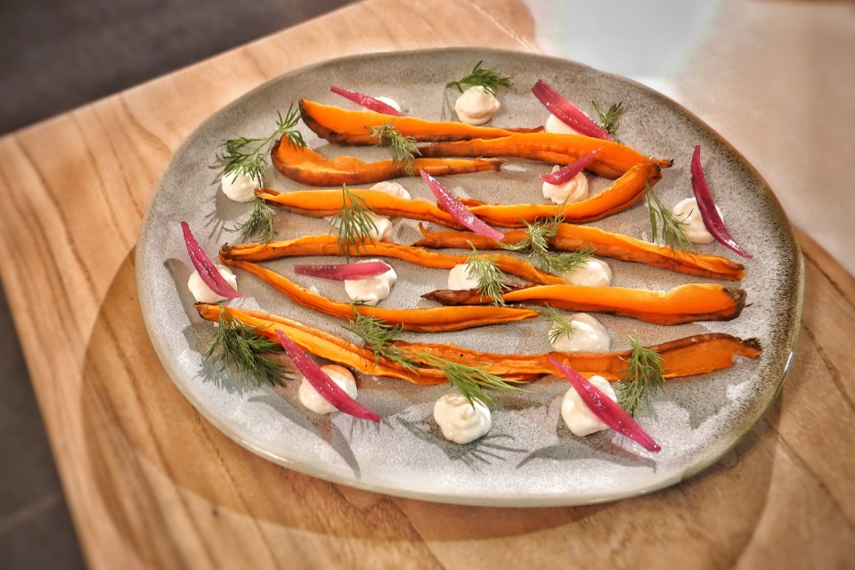 Где печь – там и приготовленные в ней корнеплоды. Вяленая морковь с соленым сыром – это в разделе закусок, а на гарнир требуйте морковь глазированную. В той же печи готовят картофель и баклажаны, тоже стоит попробовать.