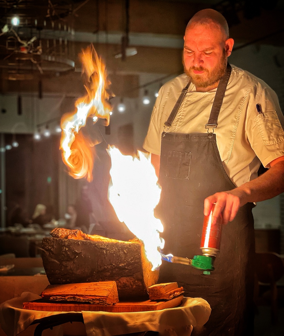 Продукты стараются подбирать местные. И иногда это лучшее, что можно себе вообразить. Сырная тарелка, например, от знаменитого нашего сыродела, обладателя чуть не всех главных французских професиональных регалий Алексея Андреева – благо он тут недалеко. Шевр его производства можно попробоват еще и в виде крема со свеклой, запеченной в печи.
