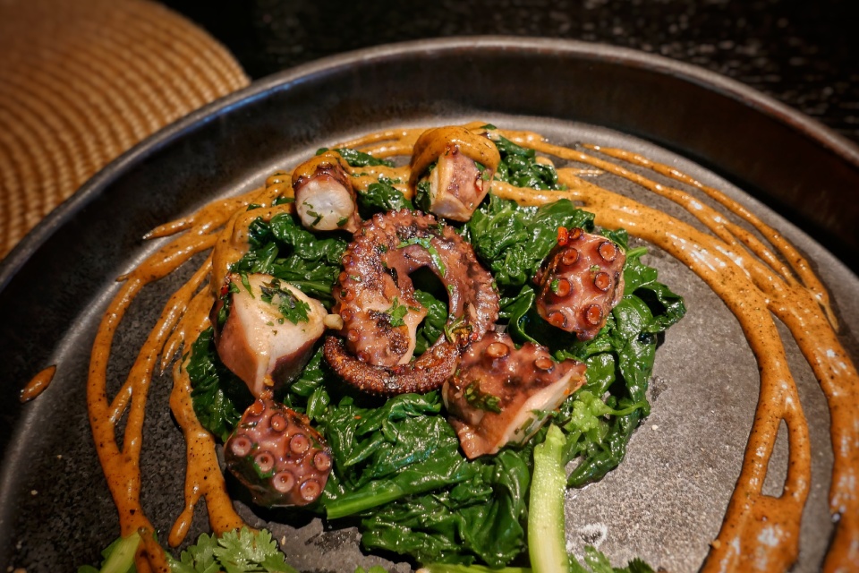Забудьте про банальные споры «на квасе или на окрошке». Лучший холодный суп, который я ел в последнее время, приготовлен на рыбно-курином бульоне с кокосовым молоком. В нем есть китайская капуста, желтые томаты и витиевато жареные креветки. Называется это — холодный том ям. И это главный хит нового летнего меню в Black Thai. Как и любой хороший холодный суп, его можно поглощать литрами и еще просить добавку. В нем многовато кинзы, но это ерунда на фоне его достоинств. Далее в меню: гребешок с соусом из сока лайма, огуречного фреша и рыбного соуса, манго, авокадо и кинзы. Тайский салат из зеленой папайи с эспумой том кха и овощами (сложнее, чем оригинальная тайская версия, ну так и Black Thai вам не абы какое заведение, тут без изысканности нельзя). Осьминог с ореховым соусом — ок (просто я к осьминогу в любом виде равнодушен), зато сопровождающий его битый шпинат — чистый восторг (выведал у Артема Мартиросова рецепт, в выходные попробую приготовить). Да и зеленая спаржа весьма к месту.