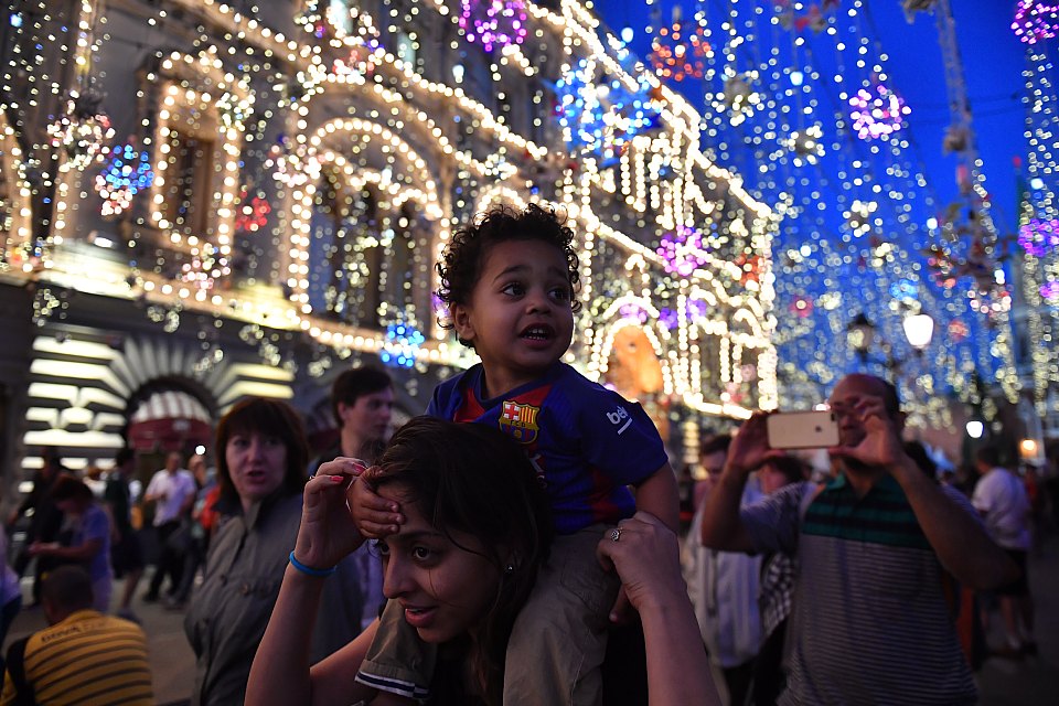Никольская улица. Тут находится самая длинная световая гирлянда. Ее протяженность составляет целых 92 километра. А на фоне невероятно красивой инсталляции «Звездное небо» фотографии получаются по-настоящему волшебными. Кстати, она появилась на улице еще во времена чемпионата мира по футболу и стала местом притяжения фанатов со всей Земли.