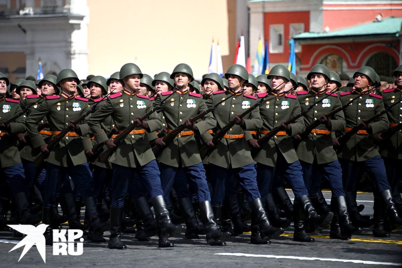 Перед трибунами прошли маршем парадные подразделения вооружённых сил Азербайджана, Кыргызстана, Казахстана, Беларуси, Таджикистана, Туркменистана и Узбекистана. Вместе с ними шествовали курсанты первого училища сухопутных войск Вьетнама, представители военной полиции Египетских ВС, почётный караул Народно-освободительной армии Китая, военнослужащие народной армии Лаоса, подразделение вооружённых сил Монголии, а также расчёт из армии Мьянмы.