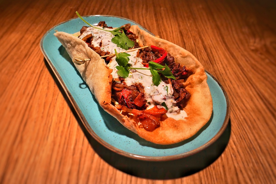 Есть блюда, исполненные близко к оригиналу, например, сатэй – крохотные малайзийские шашлычки, важнейший элемент тамошнего стрит-фуда. Есть, что называется, по мотивам – вроде тайского салата с говядиной. Зеленый карри (куриный) подают не просто с рисом, а с рисовыми вафлями (инновации никто не отменял). Отличная штука – персидский суп с фрикадельками аш-и-анар. Фирменный Steel Doner – кусочки томленой баранины в лаваше с пряным мацони.