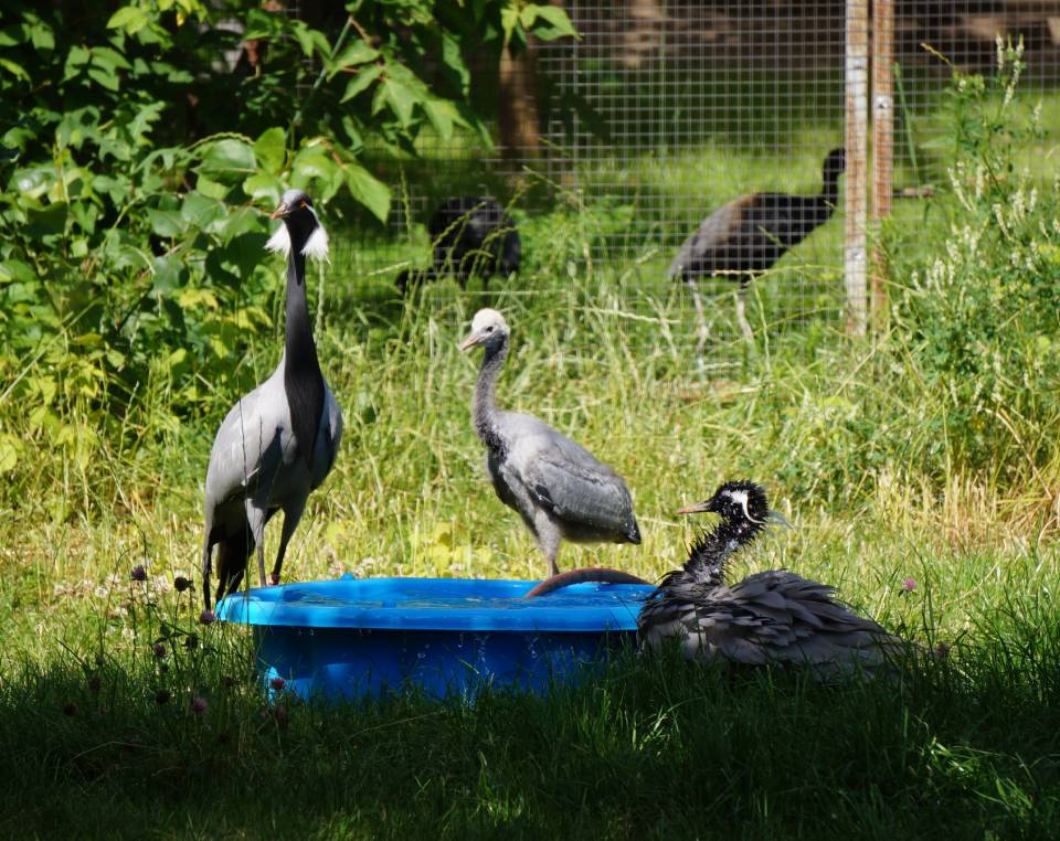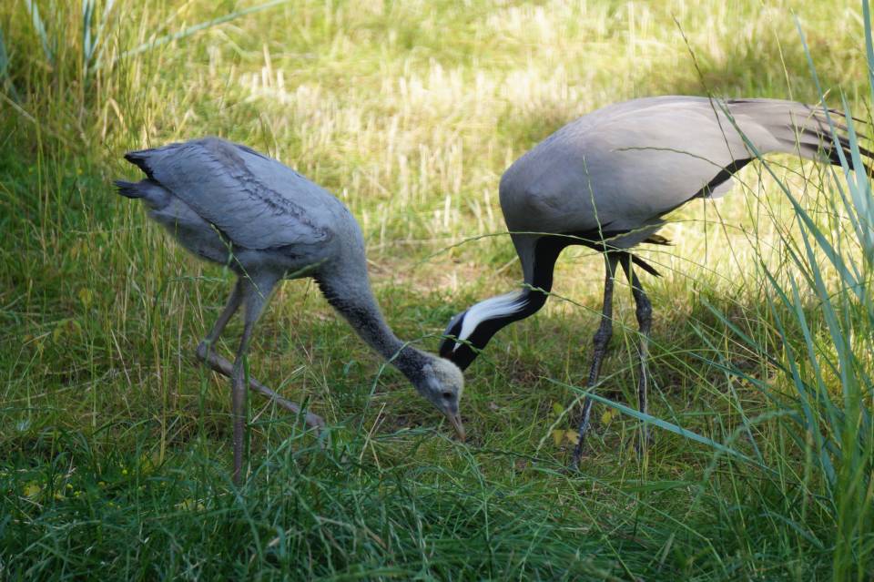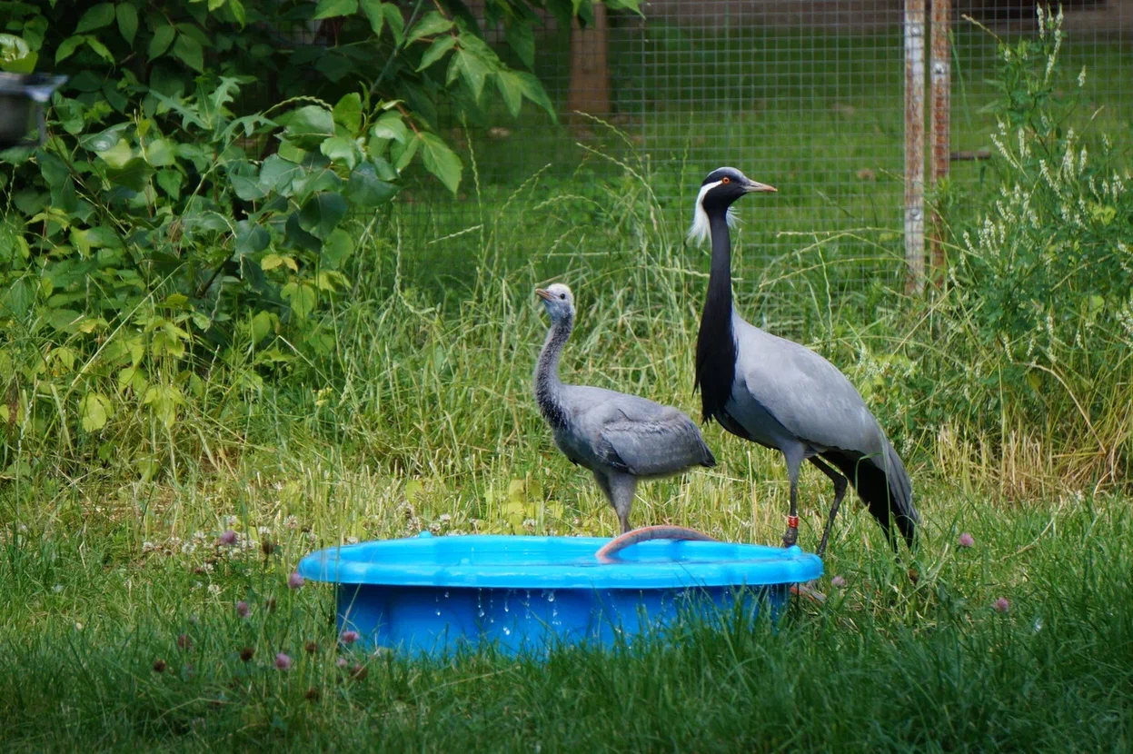 1 мая самка снесла яйцо, а спустя месяц — 31-го числа — вылупился птенец. Журавли оказались очень внимательными и заботливыми родителями. Они вместе кормят и защищают своего птенца, не допускают сотрудников зоопарка с кормом ближе, чем на 1-2 метра.