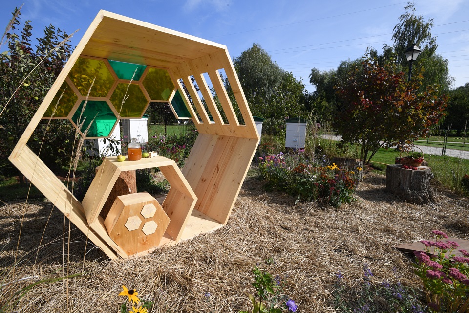Например, музей-усадьба «Ясная поляна» спроектировал сад «Старая пасека нового времени», ведь пчеловодство было большим увлечением известного писателя Льва Толстого. Сад похож на миниатюрную пасеку из далекого прошлого: среди медоносных яблонь, эхинацеи и анемонов спрятались настоящие ульи. Кстати, после фестиваля они уедут в «Ясную Поляну» — там восстанавливают историческую пасеку.