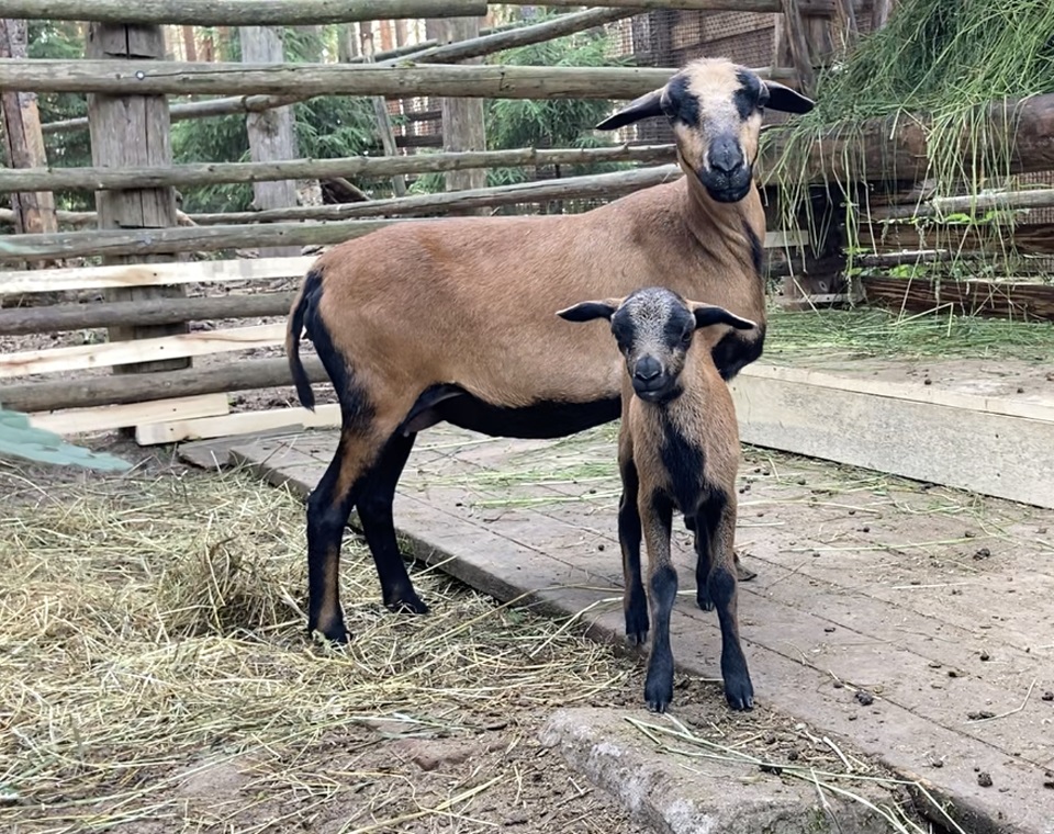 Пара камерунских овец впервые поселилась в Зоосаде в Вотчине Деда Мороза в конце мая. Ее прекрасная половина уже находилась в положении (официально беременность у этих животных должна протекать 5 месяцев, но они могут родить и на 140-150-й день). Через месяц карантина семью выпустили в уличный вольер. Пара быстро освоилась и привыкла к сотрудникам. Роды прошли без проблем, малыш оказался здоров.