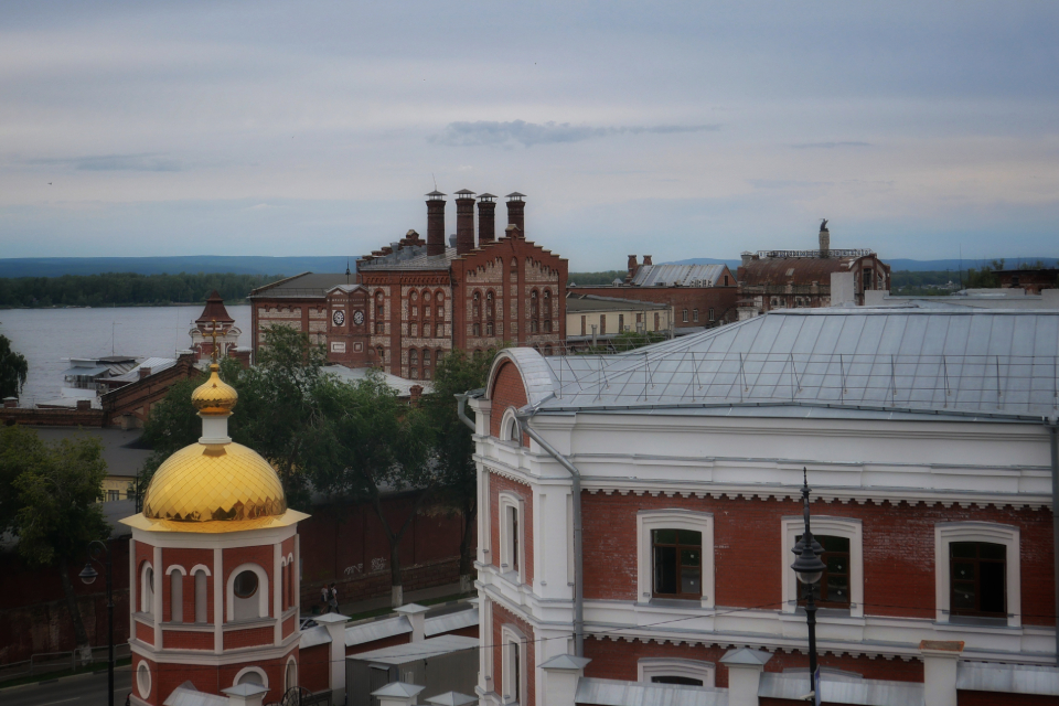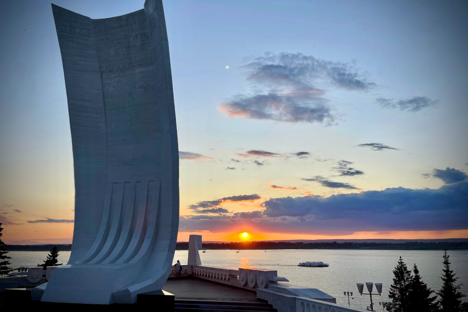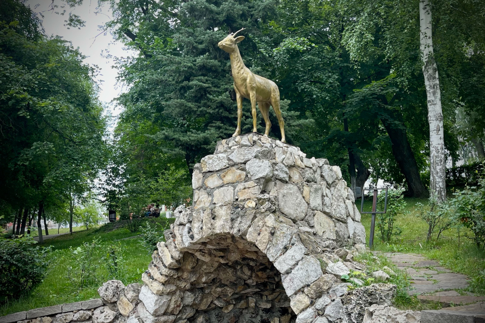 Заселяемся в отель, идем гулять по городу. Проходим через площадь Куйбышева (вторая по величине в Европе, 17 с лишним гектаров). Спускаемся к Иверскому женскому монастырю. Прекрасный вид на Волгу и на кирпичные корпуса знаменитого Самарского пивзавода. В Струковском саду любуемся скульптурой козы, той самой, которая изображена на гербе Самары.