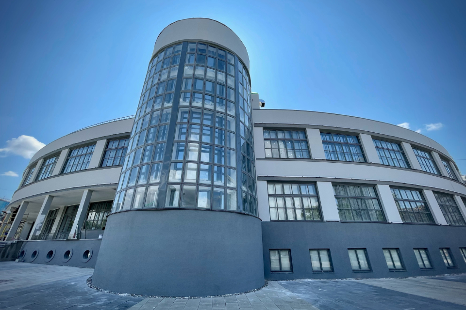 Здание имеет форму скрещенных серпа и молота, но это видно только сверху. Сейчас идет реконструкция, потом здесь будет филиал Третьяковской галереи.