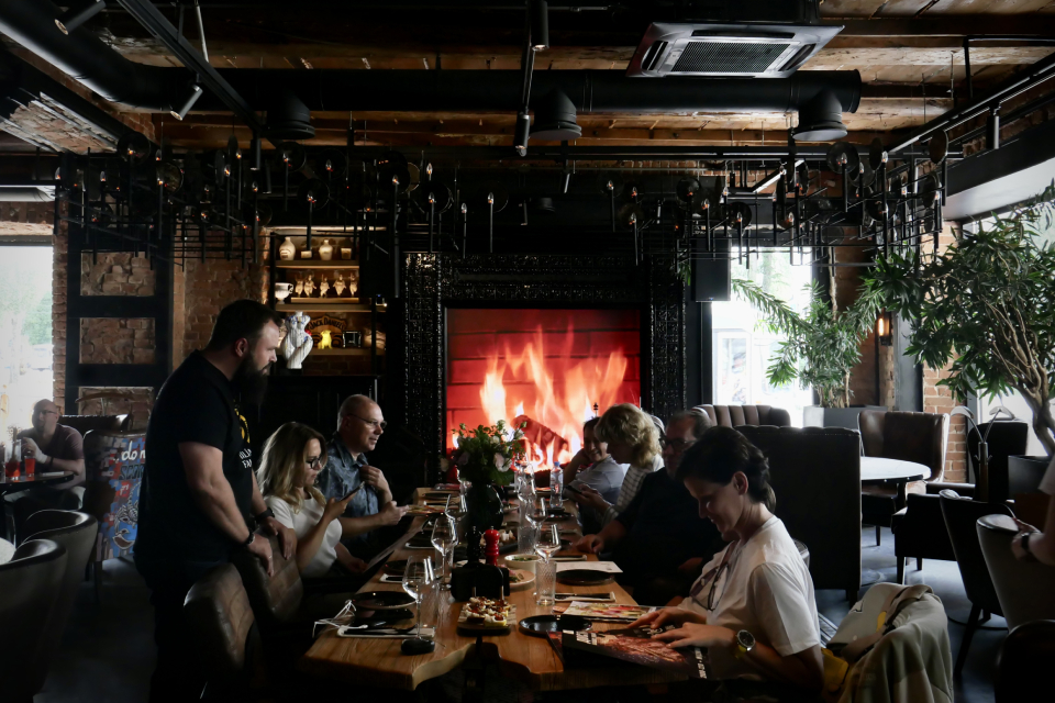 Но лучше набраться терпения и доехать до города. Пункт первый нашего гастротура — мясной ресторан с бодрящим названием «Ваще огонь» (ул. Куйбышева, 81). Мощный мотоцикл в фойе (на нем рассекает владелец заведения Евгений Реймер), дровяная печь на открытой кухне, классика рока в динамиках. Сразу ясно: сюда идут не перекусить, а поесть основательно и с чувством.