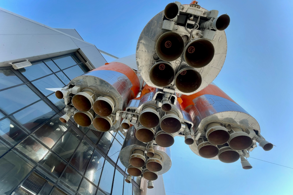 Музей «Самара космическая», ракета перед ним (говорят, это единственная в Европе вертикально установленная ракета-носитель «Союз» в собранном виде). Тут все напоминает о том, какую роль сыграла Самара в истории отечественной космонавтики.