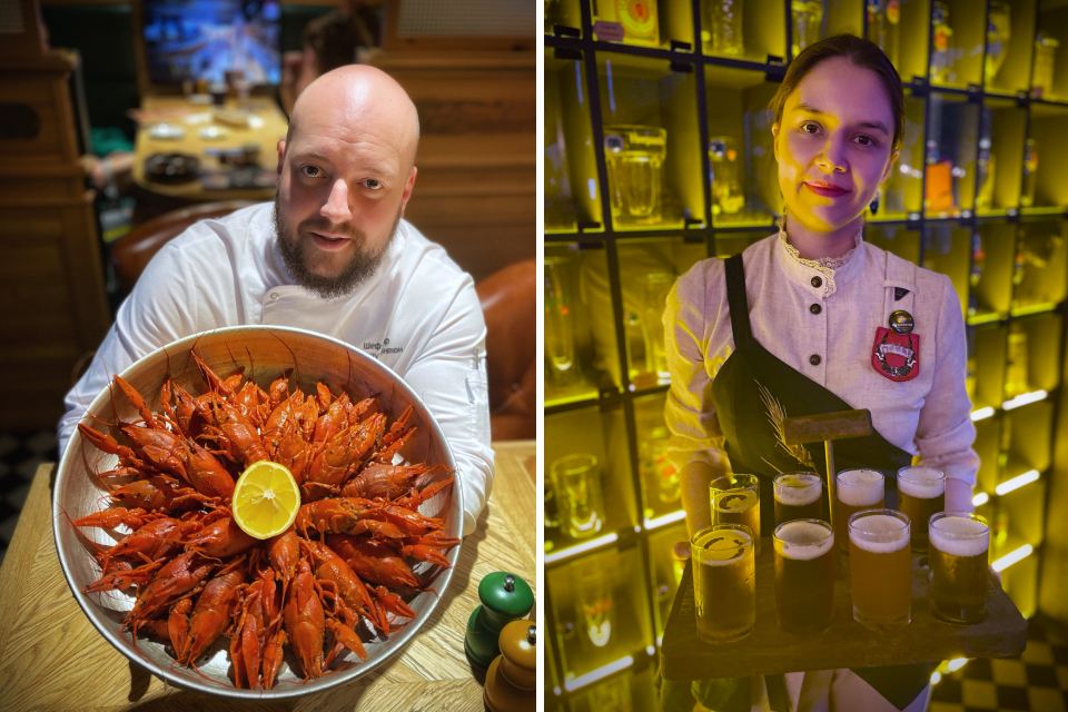 К «Жигулевскому», разумеется, берем волжских раков. Как их правильно варить, расскажет шеф-повар Антон Остроухов. Все довольно просто: чтобы раки не пахли тиной, в воду нужно положить разрезанное пополам зеленое яблоко.
