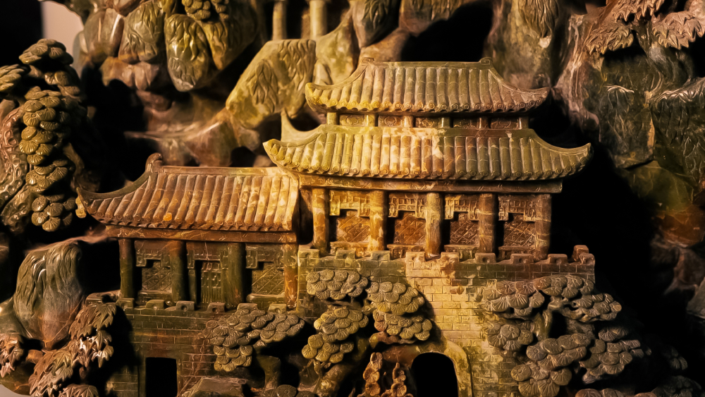 — Нефритовую часть коллекции В. Голубева можно без преувеличения назвать уникальной. Все композиции вырезаны из огромных цельных кусков нефрита или жадеита. Таких больших нефритовых самородков в Китае больше нет. Во-вторых, все эти невероятно подробные детали мастера вырезали только вручную. На одну такую композицию у камнереза уходило несколько лет! Большинство работ датируются сороковыми — пятидесятыми годами прошлого века, когда, с одной стороны, мастерство предыдущих поколений еще не было забыто, а, с другой, у художников была свобода выбора сюжетов. Потом в Китае начали массово создавать училища камнерезного искусства, но… Навыки столетиями передавались внутри одной семьи, и раскрывать секреты они не захотели. Так что значительная часть старых камнерезных техник безвозвратно утрачена. Сами работы представляют собой традиционные китайские сюжеты — мифологические, исторические, философские. Глубина проработки деталей, реалистичность — невероятные. В самом Китае сегодня такого не увидишь.