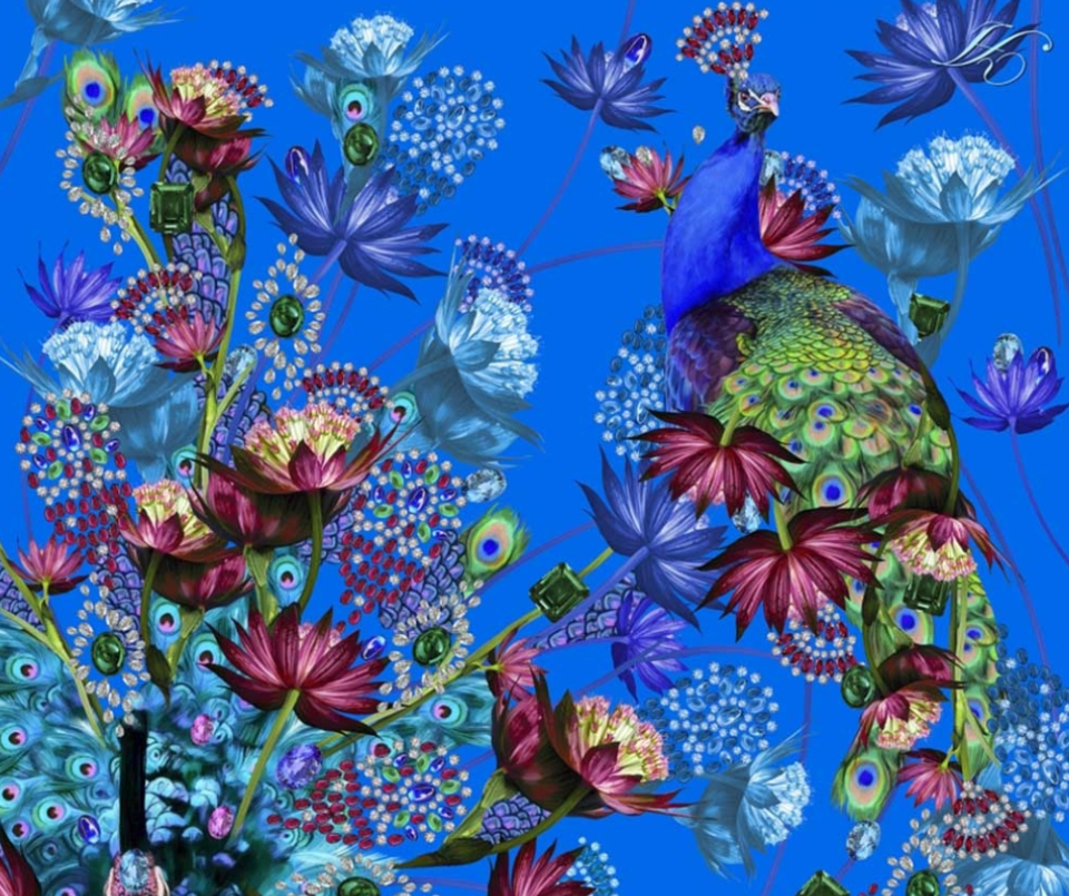 Что касается шелка, это интересная история. Мне всегда хотелось перенести картины на ткань, на фарфор, придать им утилитарную функцию. Началось все с тканей, которые я создавала для своих платьев, в которых я открывала вернисажи своих выставок. Это всегда было эффектно, вызывало восторг и интерес. Каждый раз ко мне подходили женщины и интересовались, не могла ли я им сделать ткань на платье. Я люблю красивые, интересные, эксклюзивные аксессуары. И в течение нескольких лет я искала бирюзовый платок у всех именитых марок и не находила именно те цвета, которые бы красиво оттеняли кожу, придавали шикарной элегантности и не повторялись. Я так и не остановилась ни на одном платке, но однажды у себя в мастерской, когда я проходила мимо картины с голубым омаром, меня осенило: «Вот! Вот он мой цвет и мой платок!».