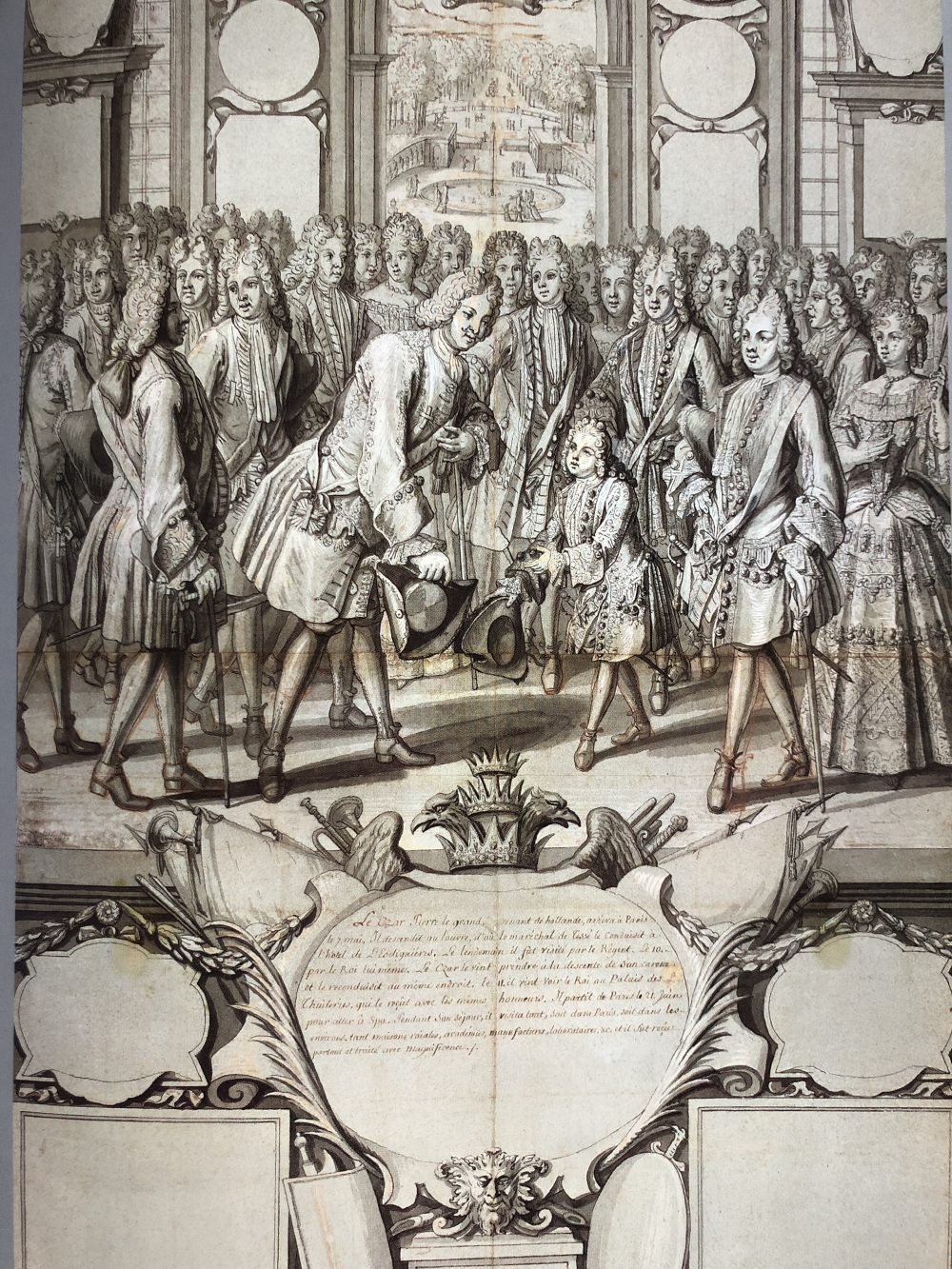 Еще один выдающийся экспонат – рисунок художника Демаре «Петр I и Людовик XV в Париже 11 мая 1717 года», подаренный Иосифу Сталину во время дипломатического визита Шарля де Голля в 1944-м. Художник Демаре лично присутствовал на встрече двух венценосных особ.