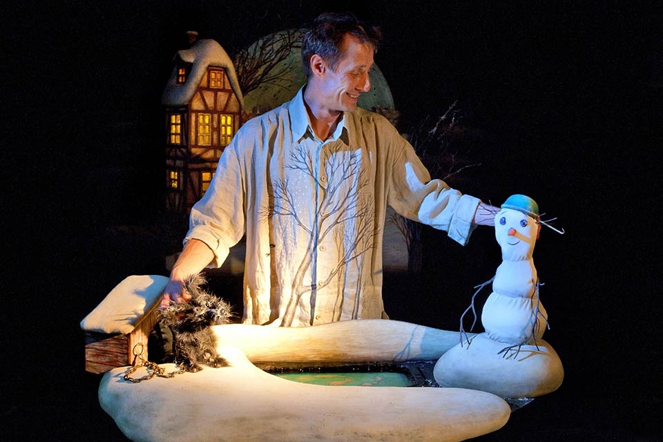 «Снеговик» — это кукольный мир, объединенный немного с драмой, немного с комедией, немного с мелодрамой, но очень понятный и близкий детям. Волшебные рисованные декорации создают неповторимый колорит маленького уютного города, укрытого пеленой снега, где и разворачиваются основные события спектакля.