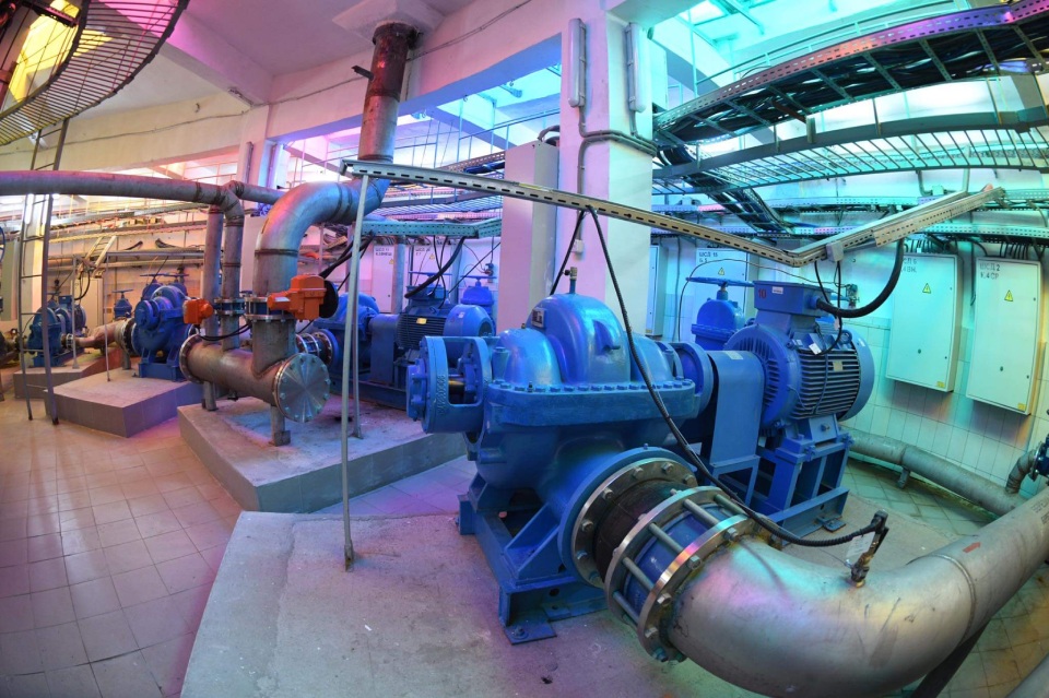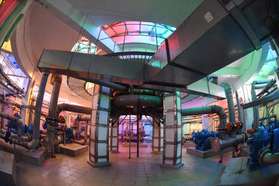 – Здесь расположены 11 насосов, которые создают высоту струй – дизайн. Здесь же регулируется подсветка – светильники белые, а стекла разноцветные (красные, синие, желтые). Щиты от декоративной подсветки чаши – тоже все здесь, — рассказывал Павел Омельченко, главный инженер «Гормост-Фонтаны».