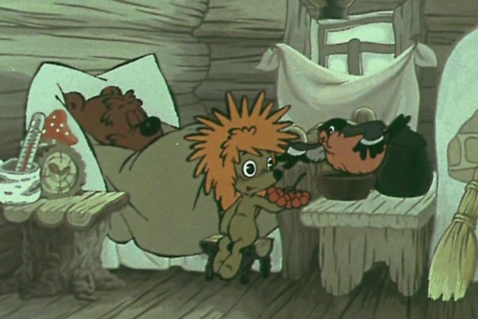 Всю зиму он ухаживал за больным. А Медвежонок спал. Когда сосульки и снег начали таять, Медвежонок выздоровел и проснулся, но ничего не помнил о своей болезни. Ежик даже расстроился, что друг не помнил, как он за ним ухаживал.