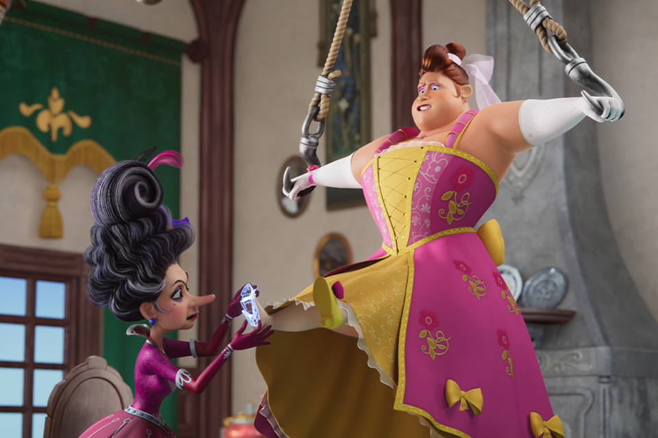 Принц Мирлифлор — самовлюблённый нарцисс, который активно рекламирует себя и даже раздаёт сувениры со своим изображением. Ради славы он готов на предательство, но со временем меняется. Мачеха — заядлая любительница покупок, присвоившая наследство Золушки и мечтающая породниться с королевской семьёй. Её дочь Анна — спортивная девушка, постоянно ест протеиновые печенья, вредная, но комичная.