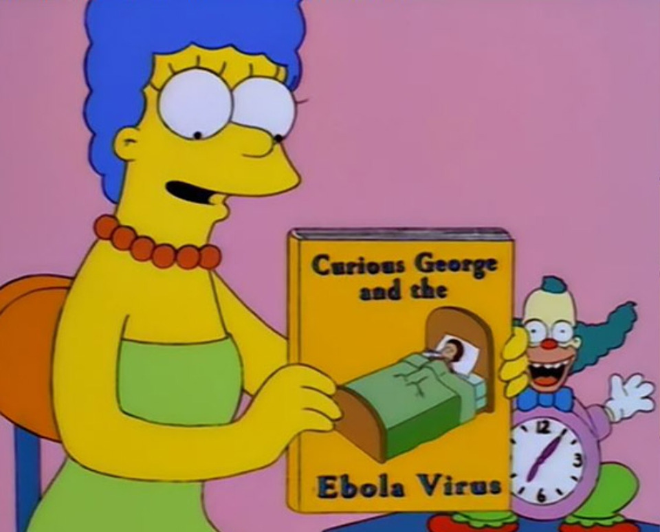 19 октября 1997 года на экранах появился 3 эпизод 9-го сезона мультфильма. По сюжету, Мардж предлагает своему заболевшему сыну Барту почитать перед сном книгу под названием «Любопытный Джордж и вирус Эбола». На обложке изображена обезьянка. Именно этих приматов подозревают в распространении вируса. Спустя 17 лет в реальном мире вспыхнула эпидемия Эболы. Однако данный сюжет можно с трудом отнести к пророчеству, ведь до выхода эпизода эпидемию вируса пережили Судан и Габон. Занятное совпадение обнаружили пользователи видеохостинга YouTube.