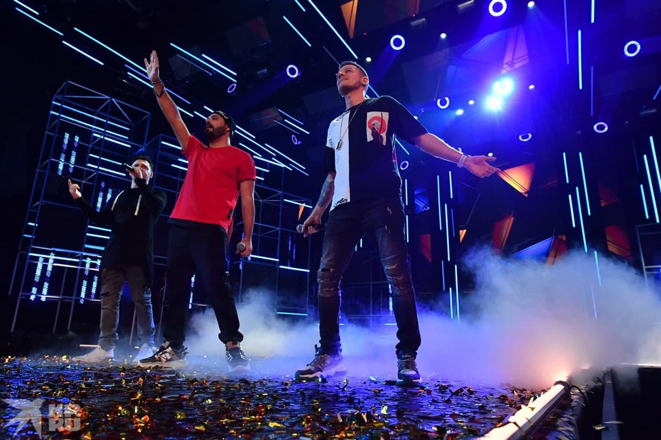 У здания Adrenalin Stadiu жаждущие селфи со звездами начали толпиться за несколько часов до начала шоу. Тимофей Пронькин из группы Hi-Fi, который вполне мог бы в этот вечер зажигать на сцене вместе со своей коллегой Мариной Дрождиной (Hi-Fi уже давно дуэт), на самом деле здесь оказался случайно – заехал поужинать. Впрочем, порция народной любви досталась и ему тоже.
