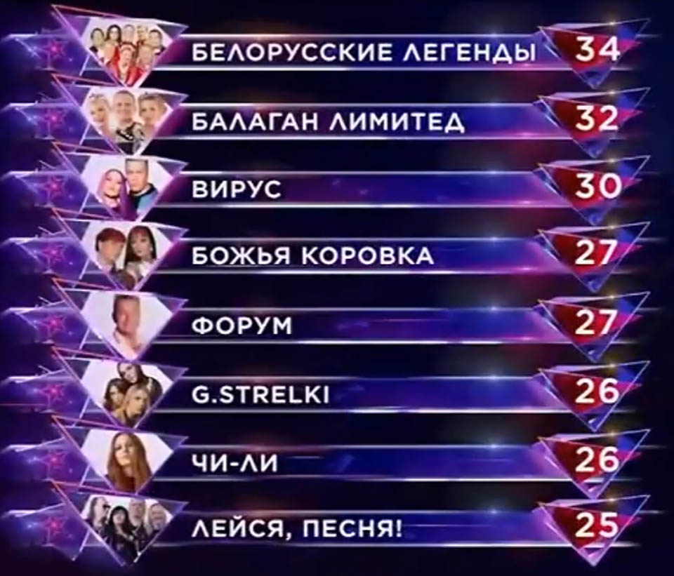 По итогам четырех конкурсных дней в «ВИА Суперстар» лидируют «Белорусские легенды» (34 балла). На втором месте – «Балаган Лимитед» (32 балла). На третьем – «Вирус» (30 баллов). Третью неделю подряд аутсайдером шоу является ВИА «Лейся, песня» (25 баллов). Несмотря на это, Викторию Блынскую и ее музыкантов вновь оставили в проекте, потому что после полученного ими иммунитета голосование было обновлено. Так это зрителям шоу объяснил Вадим Такменев.