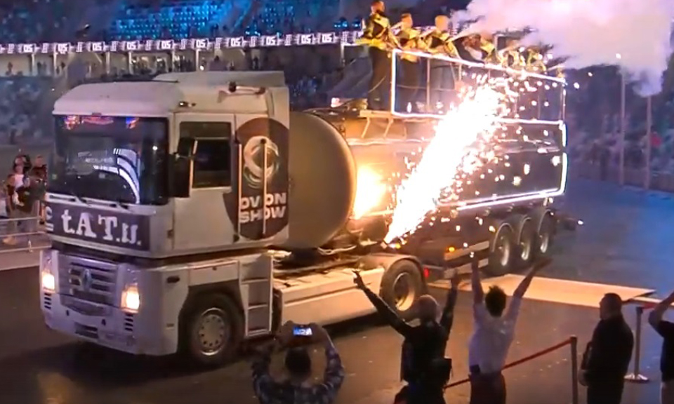 Во время своего сета Елена Катина и Юлия Волкова исполнили не так много песен, как хотелось бы фанатам – «All The Things She Said», «Не верь, не бойся, не проси» и «Нас не догонят». Но их шоу было ярким, а выехали девочки на стадион на бензовозе, прямо как в том самом клипе. Артистки были немногословны, поприветствовали публику в начале и попрощались в финале последней песни. А вот почитателям творчества «Тату» есть, что сказать.