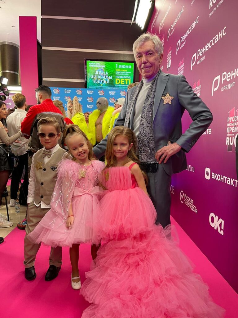 73-летний телеведущий Юрий Николаев с юными звездочками своей музыкальной академии.