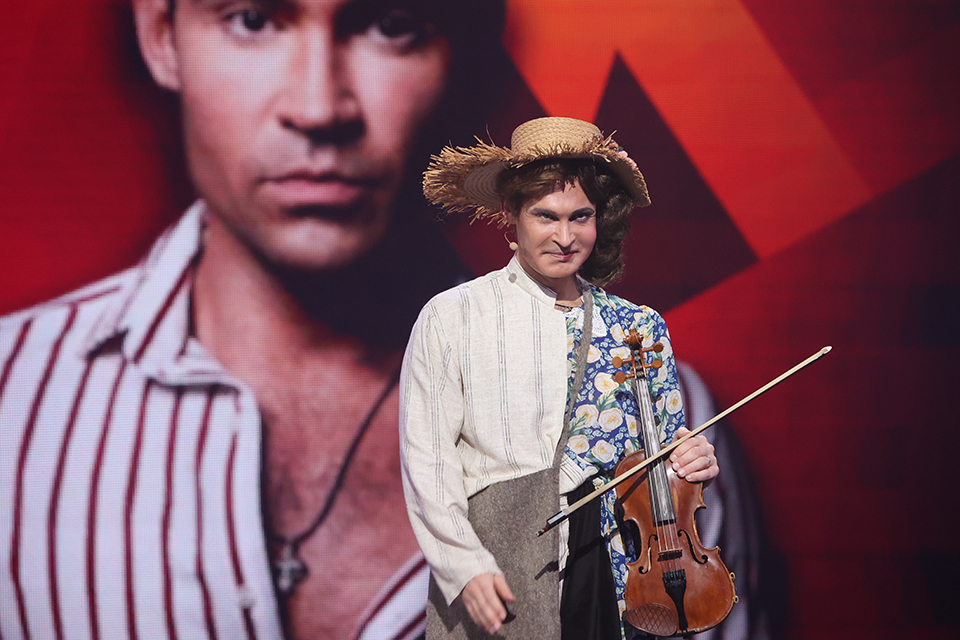 Десятый участник – «Леонид и Эдит Утесовы» с песней «Му-му». Юрий Титов одновременно представил знаменитых отца и дочь, работая анфас. «Юра, это сложно, правда. Сложно петь, потому что специфическая манера исполнения. Еще и скрипка», – Марина Федункив была в восторге от работы исполнителя хита «Понарошку».