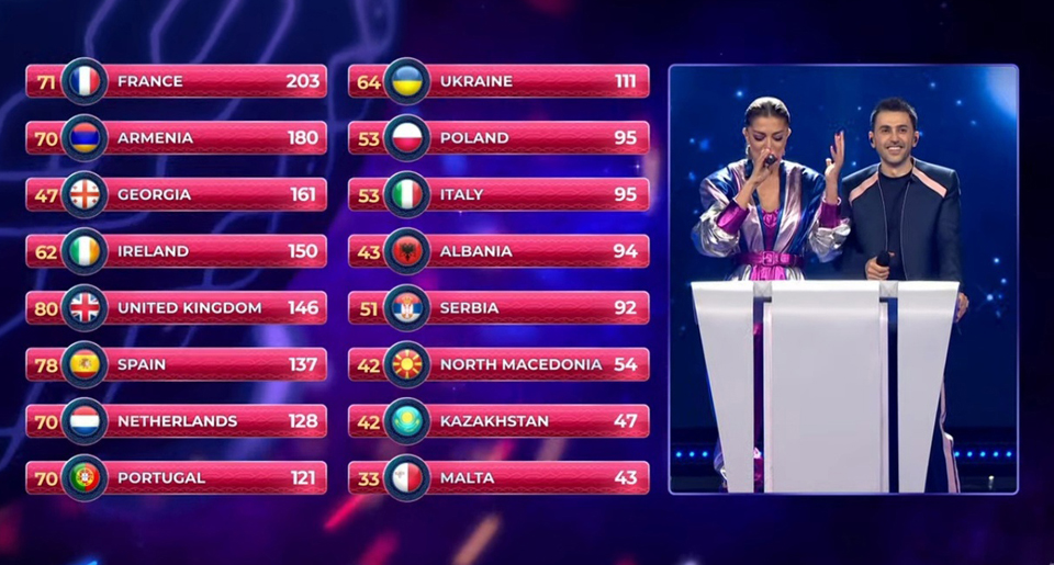 Отметим, что фаворитка конкурса – Фрейя Скай из Великобритании, на победу которой многие ставили, заняла только 5 место (146 баллов). Известно, что за несколько дней до конкурса у Скай случились проблемы со здоровьем. Так девочка не смогла принять участие в генеральной репетиции. Вместо этого показали ее выступление с другой репетиции, где по медицинским показаниям юная певица выступала под свою фонограмму.