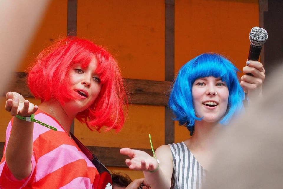 Мы, конечно же, спросили, как возникла история с париками, в которых регулярно выступают вокалистки Даша и Арина. И сколько их уже было.