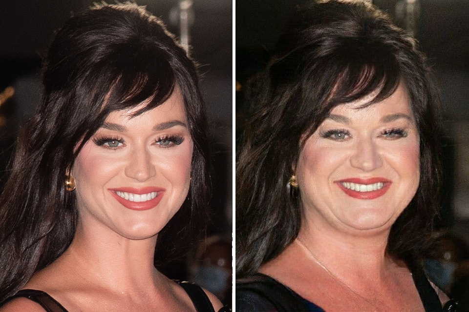 Мэрайя Кэри, Джим Керри, а вот и Кэти Перри. Здесь лишние 20 килограмм прибавили исполнительнице хитов «Dark Horse», «Roar», «Hot N Cold» и 20 лишних лет. Поэтому, Кэти точно лучше не поправляться до таких размеров.