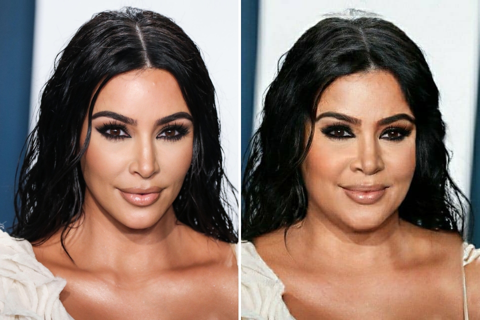Звезда реалити-шоу, актриса и модель Ким Кардашьян (кстати, ее прапрадед и прапрабабушка Сэм и Харом Кардашовы были армянами, эмигрировавшими в США) в жизни и так нельзя назвать худышкой, а тут мы еще со своим безобразием. Но Ким явно на нас не обидится, ведь после «преображения» она даже стала немного похожа на Монику Белуччи. Хоть еще один сезон «Семейства Кардашьян» снимай.
