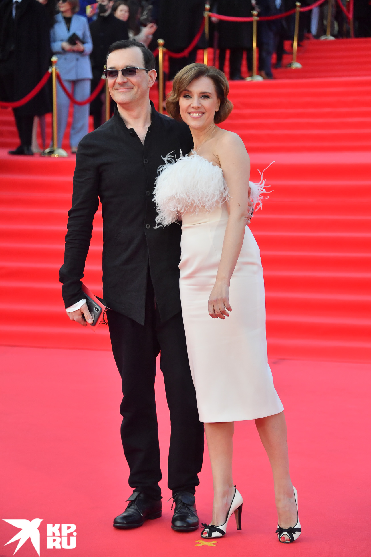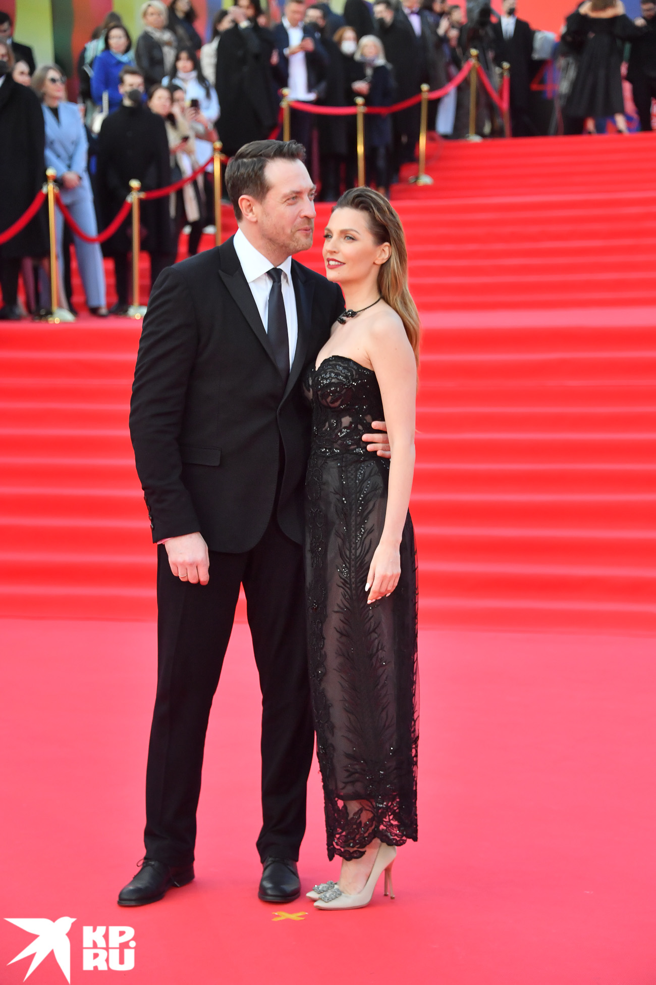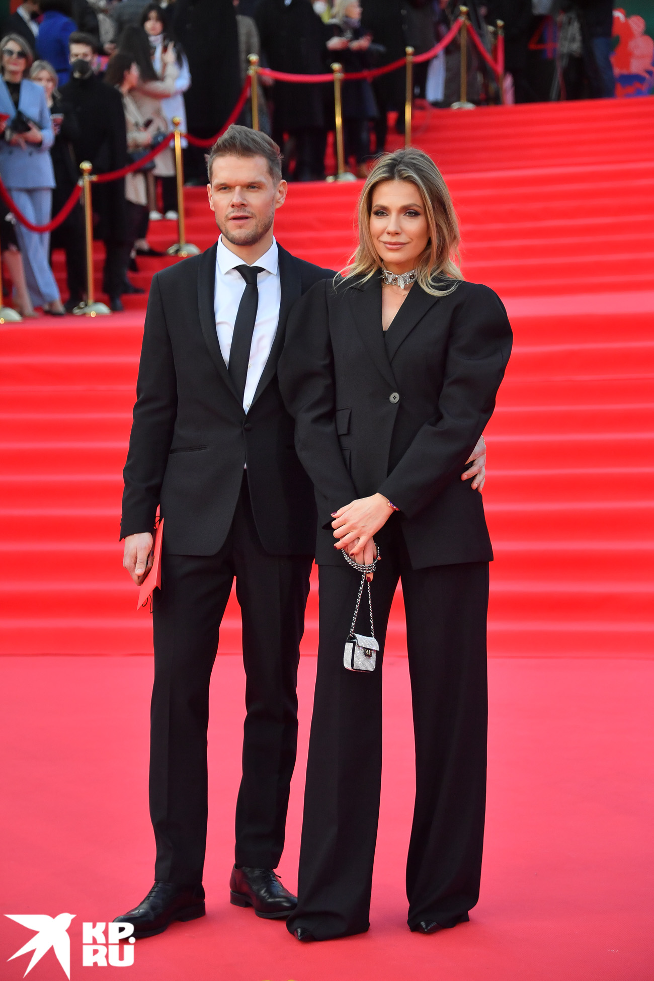 Бывшая солистка коллектива Александра Савельева вышла на красную дорожку с мужем Кириллом Сафоновым. Актер надел классический костюм, ну а его спутница — кружевное вечернее платье с декольте.